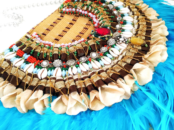 Odette Beaded Shell and Petal-Embellished Aso-Oke Fringed Feather Shoulder Bag